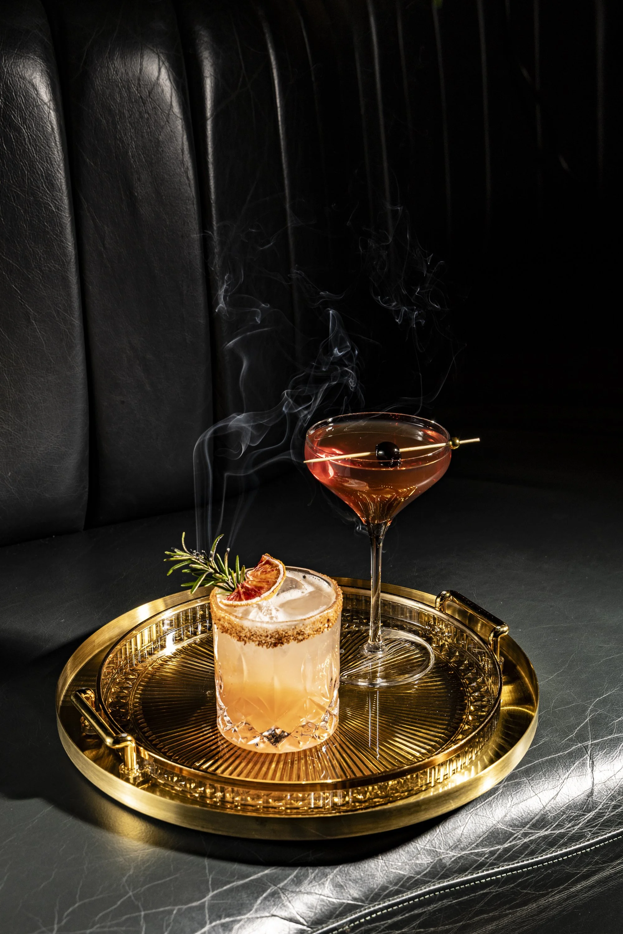 Dobel Anejo, Orange Liquor, Luxardo, Grapefruit Juice, Lime, Smoked Rosemary